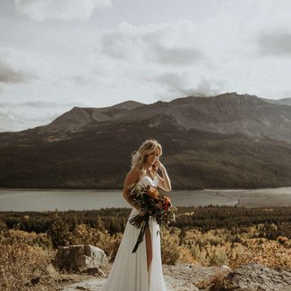 But the fun didn’t end when this mid century modern wedding day did! The next day, Ashley and Manny embarked on an adventure session in Glacier National Park! Not only did they get to get all dressed up in their wedding attire again, but they got to explore the natural wonder of Glacier. Together with their photographer, they discovered incredible views, including open fields, meadows, and lakes, all with the mountains towering behind them!