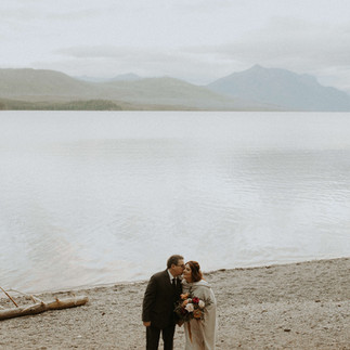 For their nuptials, Beth and David took full advantage of having a sunrise elopement by having their ceremony at daybreak followed by an adventure session. They didn’t have to worry about other Glacier visitors nearby to their ceremony nor crashing the backdrop of their photos. They simply got to revel in the beauty of Apgar Picnic Area Shoreline and each other!