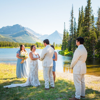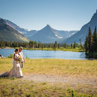 I’ve officiated my fair share of weddings since getting ordained, but I’ll never forget this couple and their Glacier National Park wedding at Pray Lake! It could not have been a more gorgeous day with the sun hitting just right, the lake as blue as the sky, and the bright colors of Tabatha’s bouquet complementing the setting perfectly.