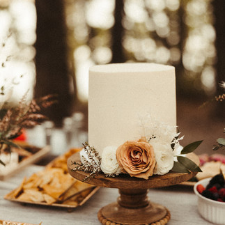This microwedding brunch reception was made complete with champagne (or mimosa!) toasts along with their meal. In between the delectable pastries and charcuterie spread provided by The Kopper Kitchen was a minimalistic wedding cake with touches of floral to fit their effortless, natural theme.